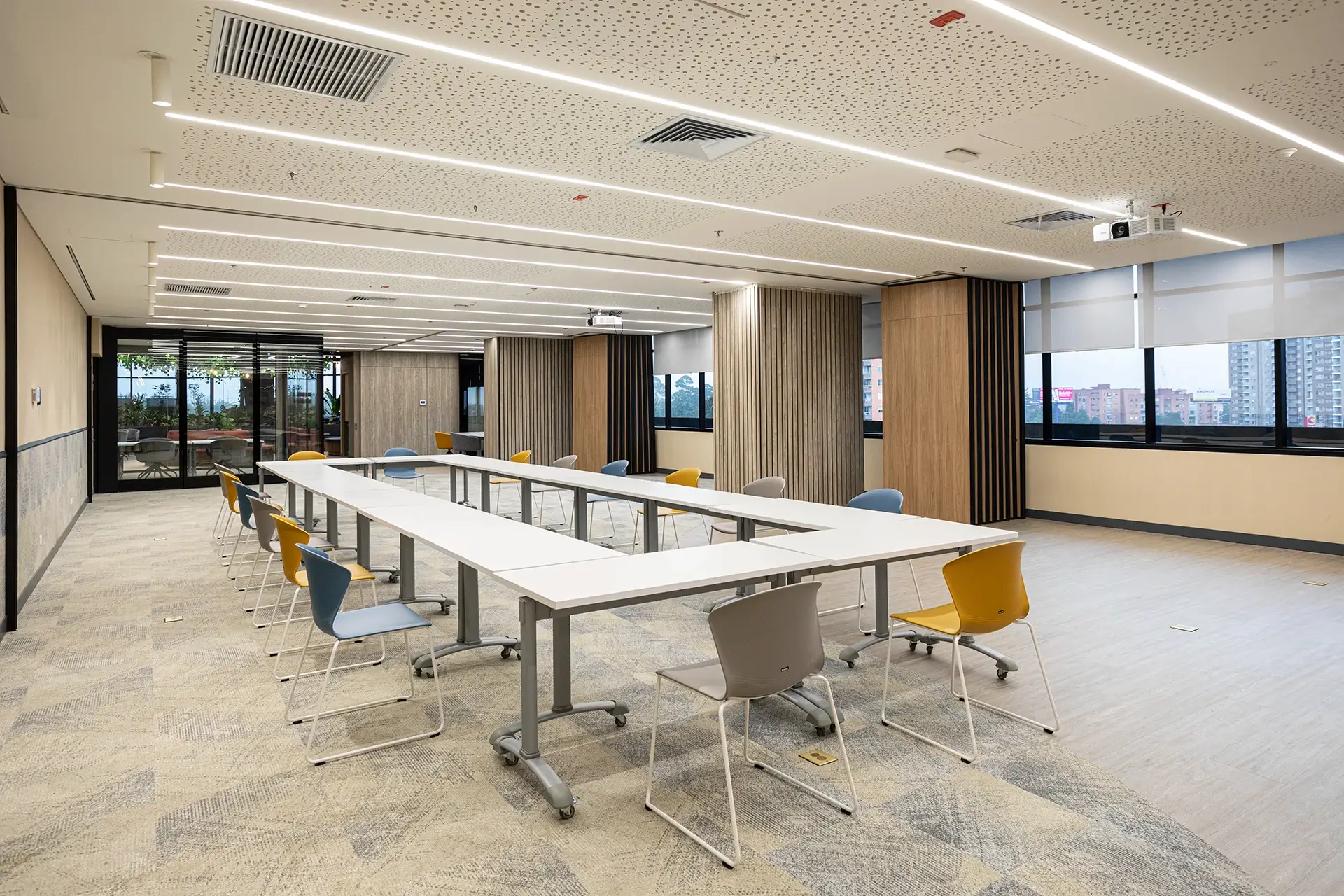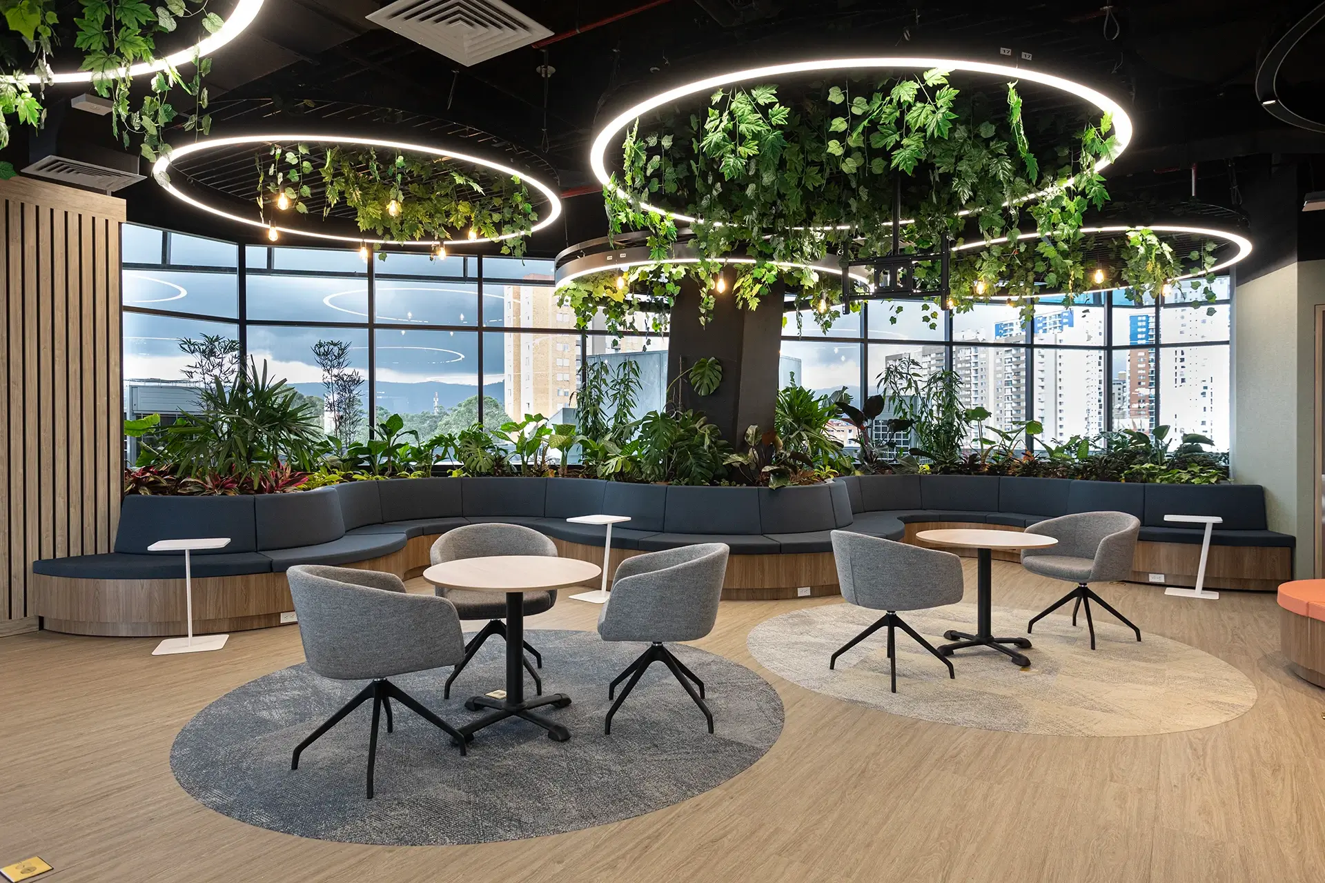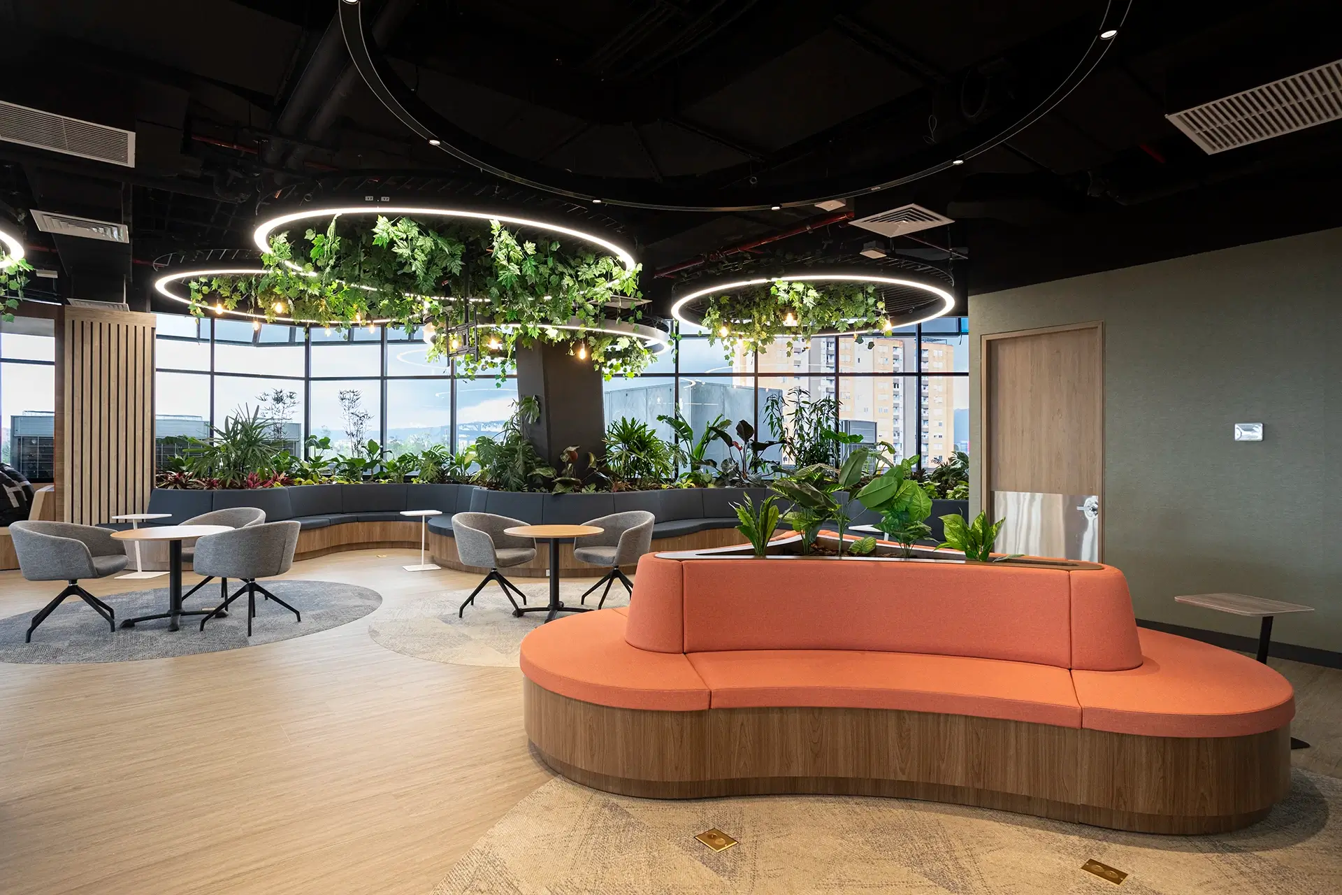 Los amenities de Connecta 80 están ubicados en Bogotá en la Cr. 72 # 81b-13 dentro de un complejo de oficinas compuesto por tres torres, frente al CC Titan Plaza. El cliente quería que este espacio fuera un centro integrador donde las personas que ocuparan las futuras oficinas pudiesen gozar de un lugar que contemplara la concentración y la adaptabilidad sin perder esa sensación de refugio personal que se caracterizaría por texturas, colores, olores y formas. Desarrollamos dos conceptos, el escogido se denominó GUARIDA ITINERANTE, donde el usuario exploraría su identidad desde el individualismo y le permitiría imaginar haciéndolo sentir en confianza y uno mismo con el lugar.