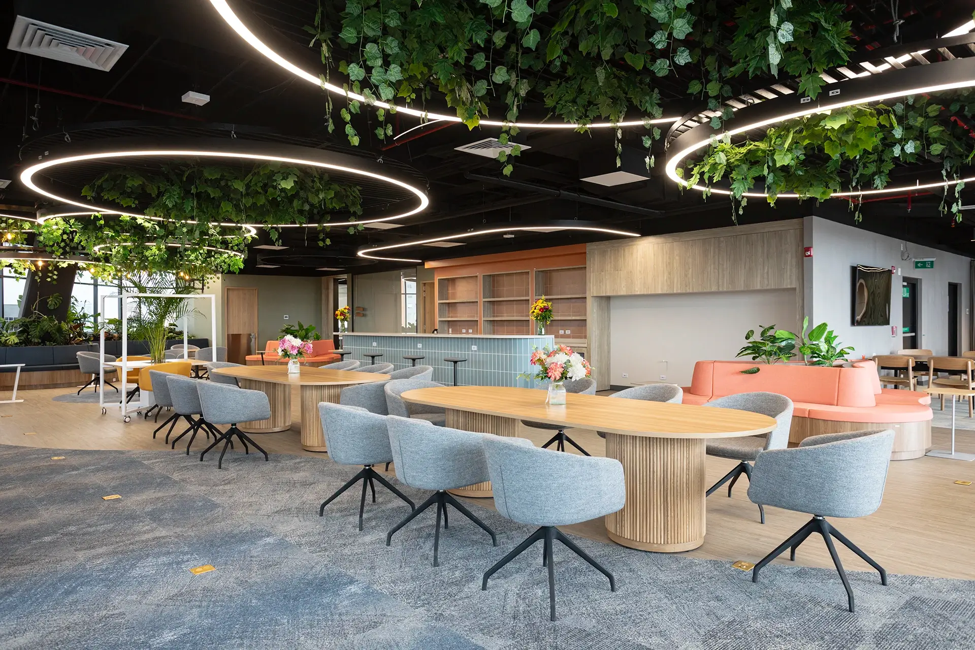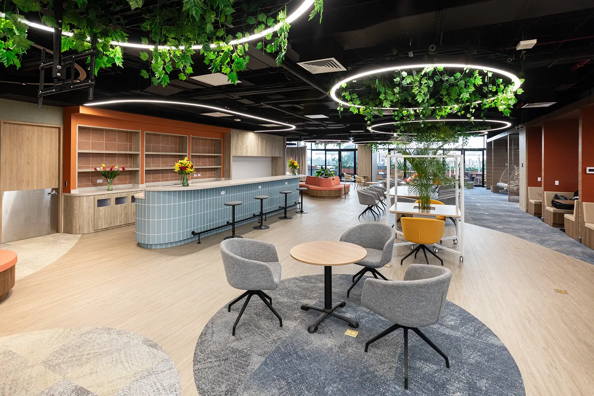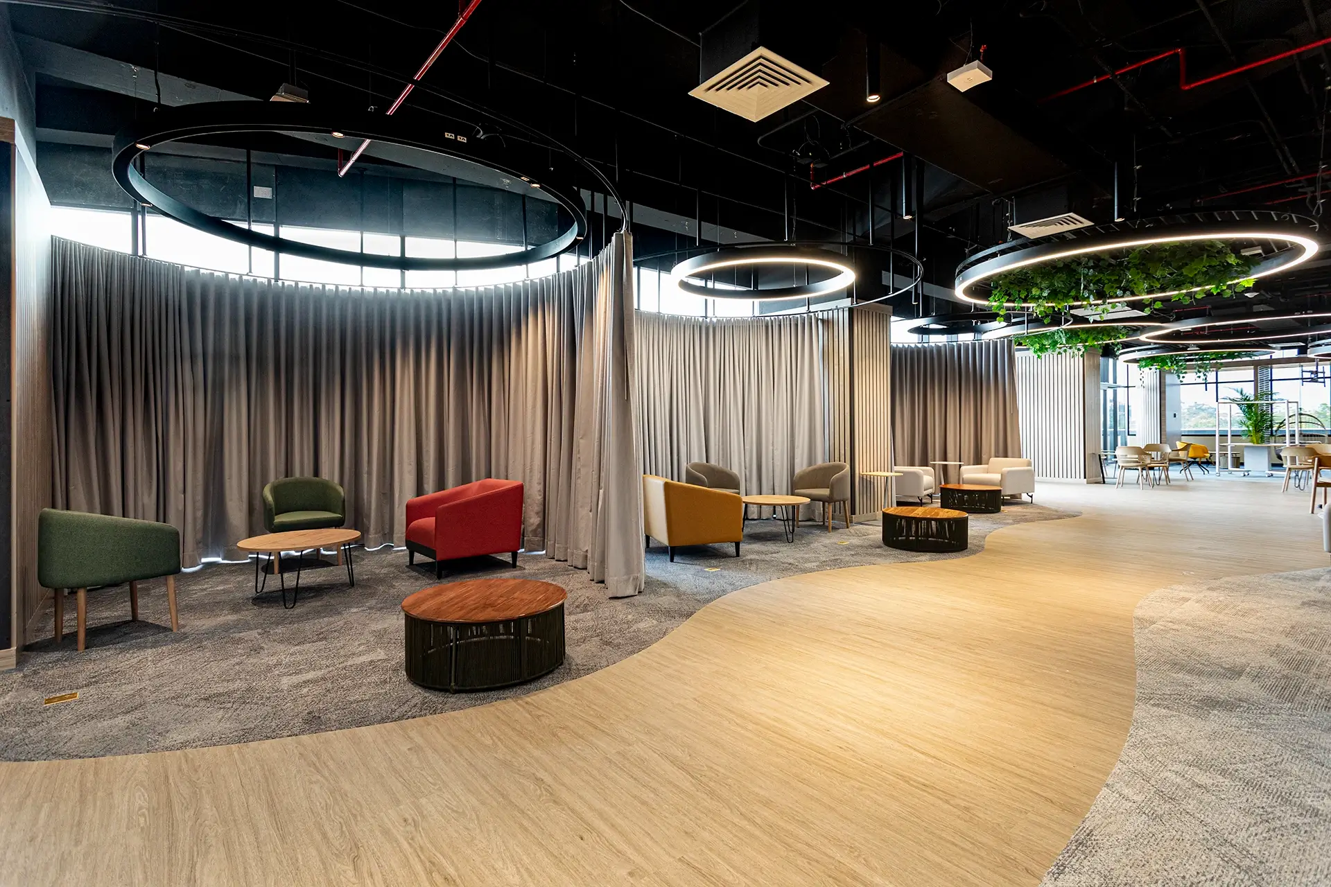 Los amenities de Connecta 80 están ubicados en Bogotá en la Cr. 72 # 81b-13 dentro de un complejo de oficinas compuesto por tres torres, frente al CC Titan Plaza. El cliente quería que este espacio fuera un centro integrador donde las personas que ocuparan las futuras oficinas pudiesen gozar de un lugar que contemplara la concentración y la adaptabilidad sin perder esa sensación de refugio personal que se caracterizaría por texturas, colores, olores y formas. Desarrollamos dos conceptos, el escogido se denominó GUARIDA ITINERANTE, donde el usuario exploraría su identidad desde el individualismo y le permitiría imaginar haciéndolo sentir en confianza y uno mismo con el lugar.