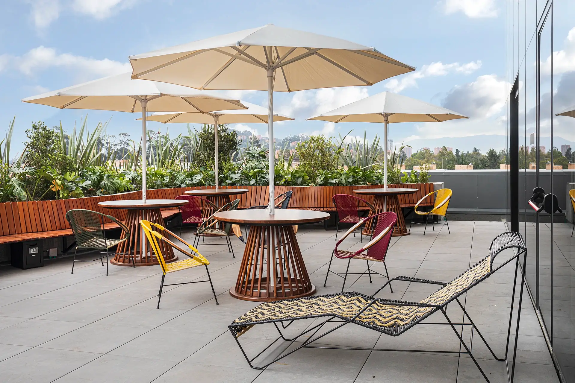 Para la distribución arquitectónica se planteó una circulación orgánica y espacios abiertos y móviles para que le permitieran al usuario ajustar el espacio a su necesidad. La paleta de colores y materiales se enfocó en la búsqueda de un espacio que generara calidez, tranquilidad y que se permitiera acoplar a cualquier tipo de gusto y personalidad. Desde la distribución, se pensó en que el usuario mismo fuera el que desarrollara el lugar, las formas orgánicas hacen que un espacio sea flexible a la vista y queríamos que sucediera lo mismo funcionalmente. Los acabados debían enmarcar zonas, pero así mismo crear una identidad, por ellos se escogió una paleta cálida pero que a la vez la vegetación le diera un toque de tranquilidad.
