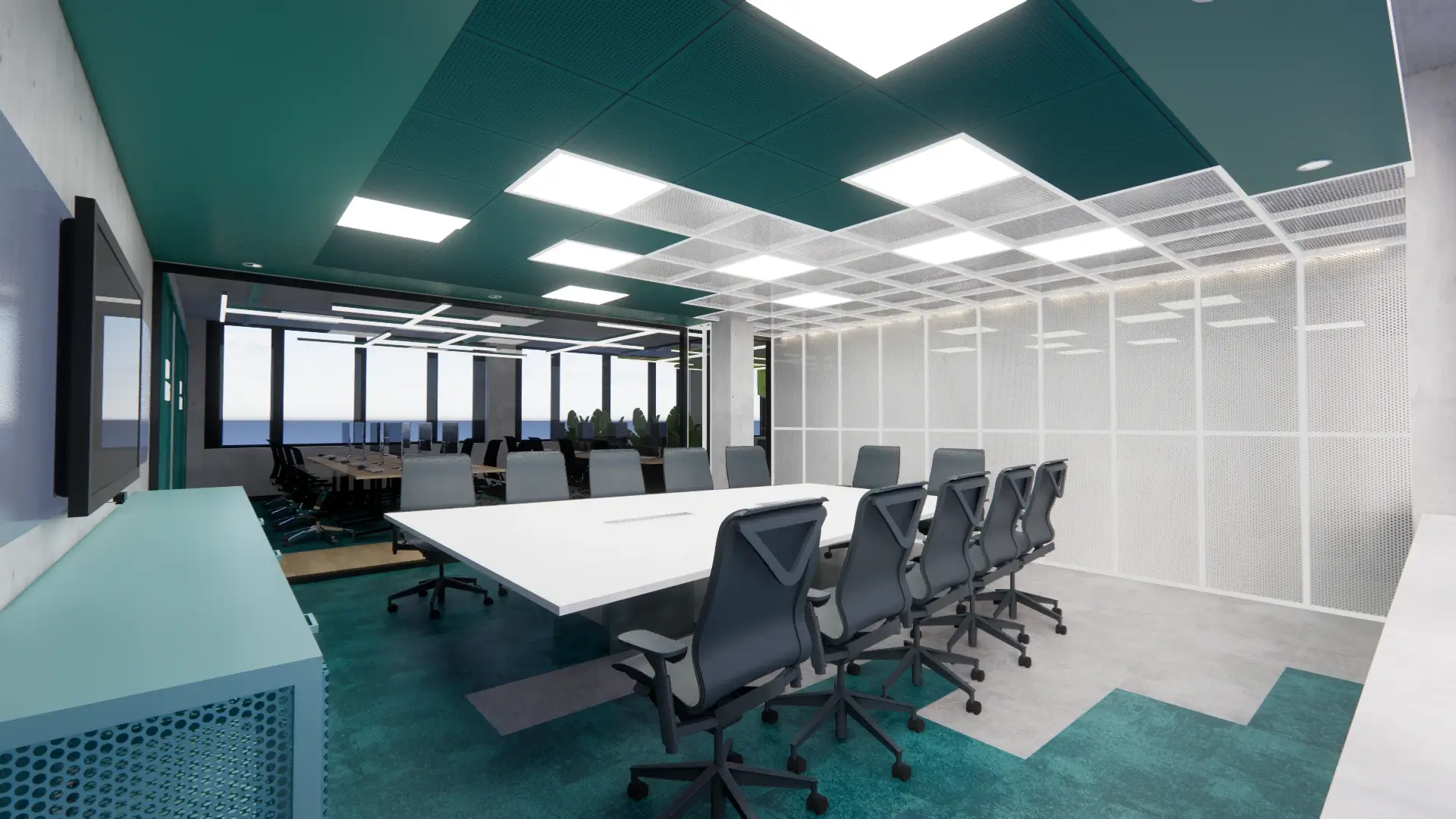 La distribución arquitectónica se basó en un estilo de trabajo tipo work café, donde las áreas de Globar, comedor, y open office comparten un mismo espacio abierto. Esto permite una gran variedad de tipologías de trabajo, así como mayor flexibilidad en la distribución del espacio. Los únicos espacios completamente cerrados con los que cuenta el layout son las salas de reuniones, las cuales requieren una disposición más formal, y una zona de servicios complementarios que cuenta con área colaborativa, phonebooths, zona de juegos, copy point, almacenamiento y cuarto IT.
