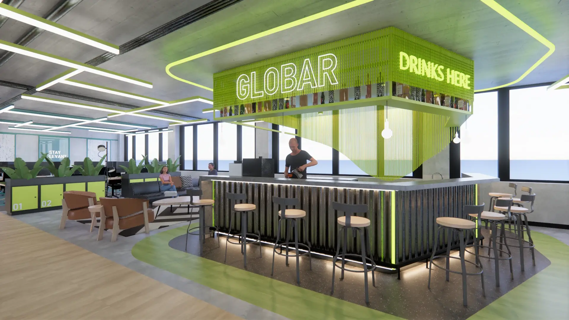 Globant es una compañía de tecnología fundada en Argentina, líder en el desarrollo de software. El concepto “Las cosas como son” busca resaltar la riqueza de los materiales en su estado más puro a partir de 3 ideas claves: estructuras honestas, materiales crudos, y elementos ornamentales basados en la integridad material.
