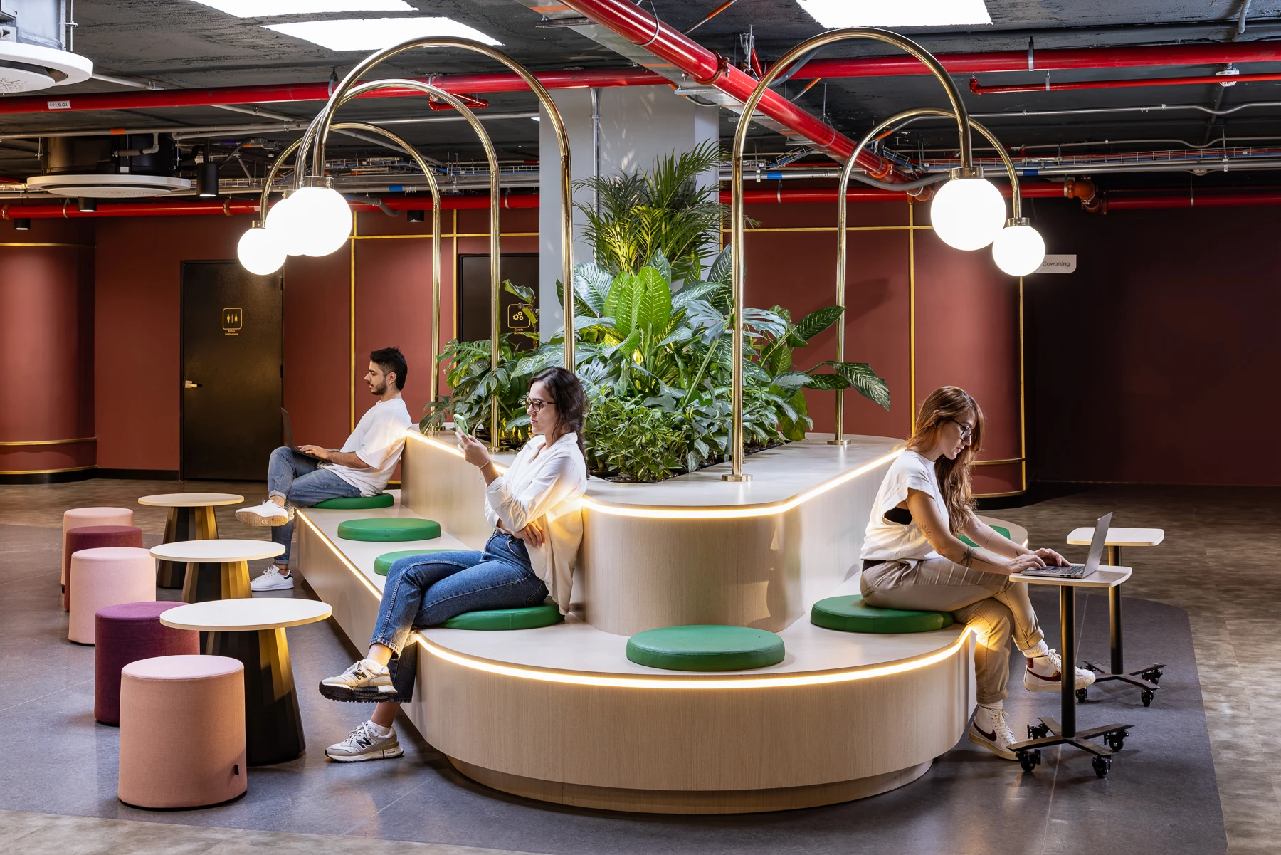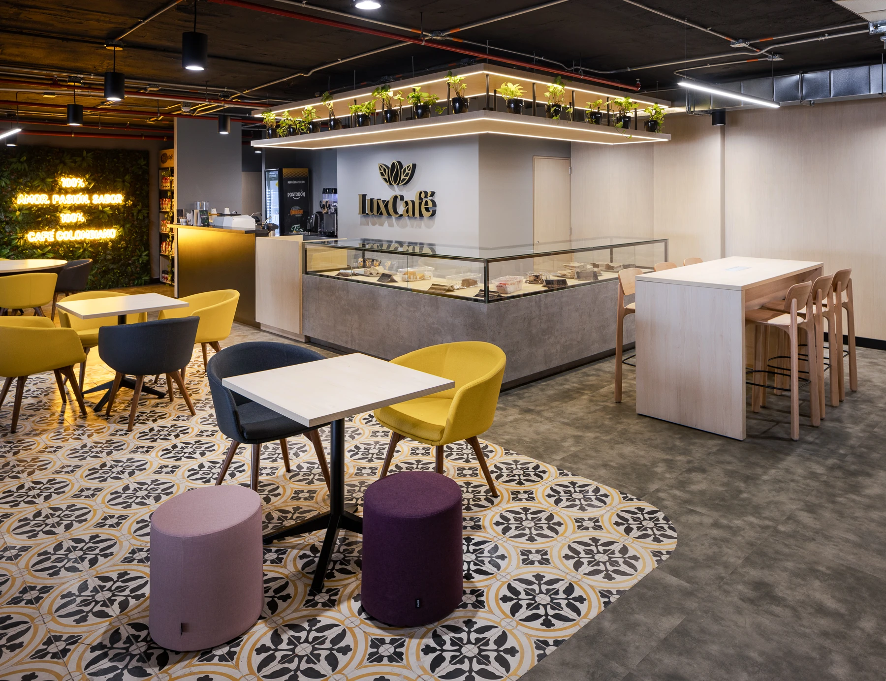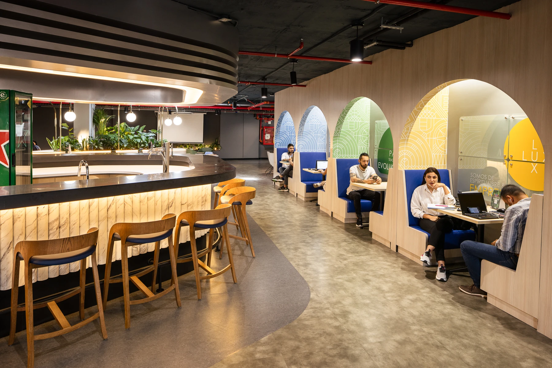 - La estrategia de diseño implementada en el proyecto, consta de rehabilitar el Auditorio principal (Local 304) y reconfigurar el resto de los espacios, de manera que cada uno permita que los espacios cumplan con las necesidades expresadas por el cliente, el cual se identifica con zonas de reunión, coworking, locales comerciales y un auditorio